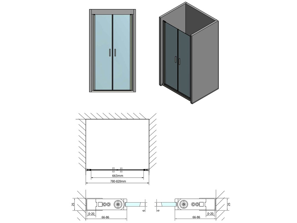 - Dvoukřídlé dveře 800, 900, 1000 a 1200 mm jsou vhodné pouze pro instalaci do niky, nelze je kombinovat s boční stěnou