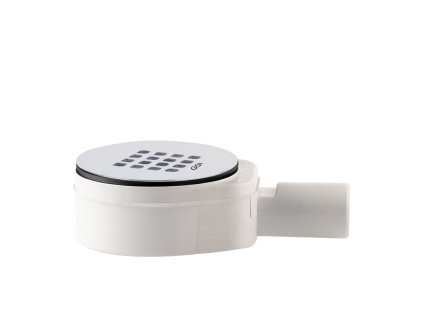 Podlahová vpusť pro sprchovou vaničku s chromovou krytkou, jednoduchou instalací a vysokým odvodem vody.