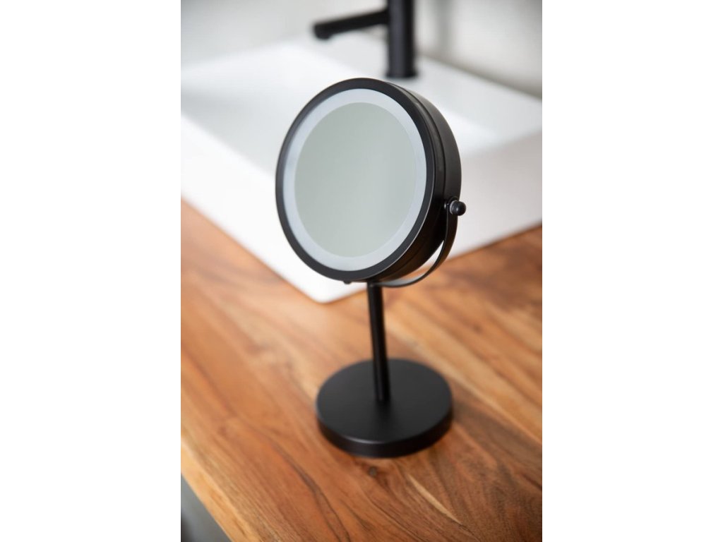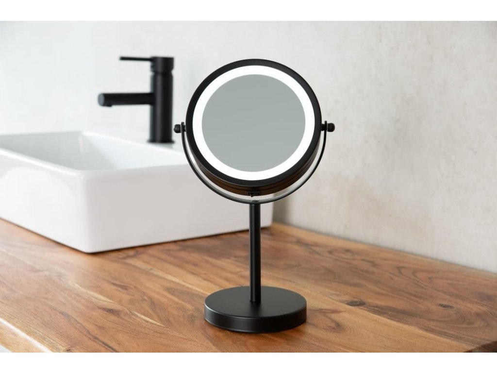 Ridder DAISY kosmetické zrcátko na postavení LED, Ø 150 mm, oboustranné, černá 03111010