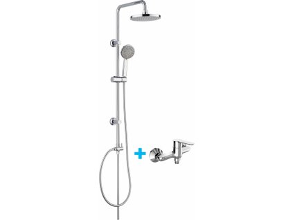 Sprchová souprava horním vývodem, talířová sprcha ø 190 mm, třípolohová ruční sprcha, nástěnná baterie 100 mm, nerez hadice 1500 mm, připojovací hadice 550 mm