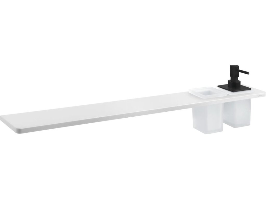 Sapho ABELINE police, sklenka + dávkovač/černá, 800mm, rockstone, bílá mat AE802-0101-03