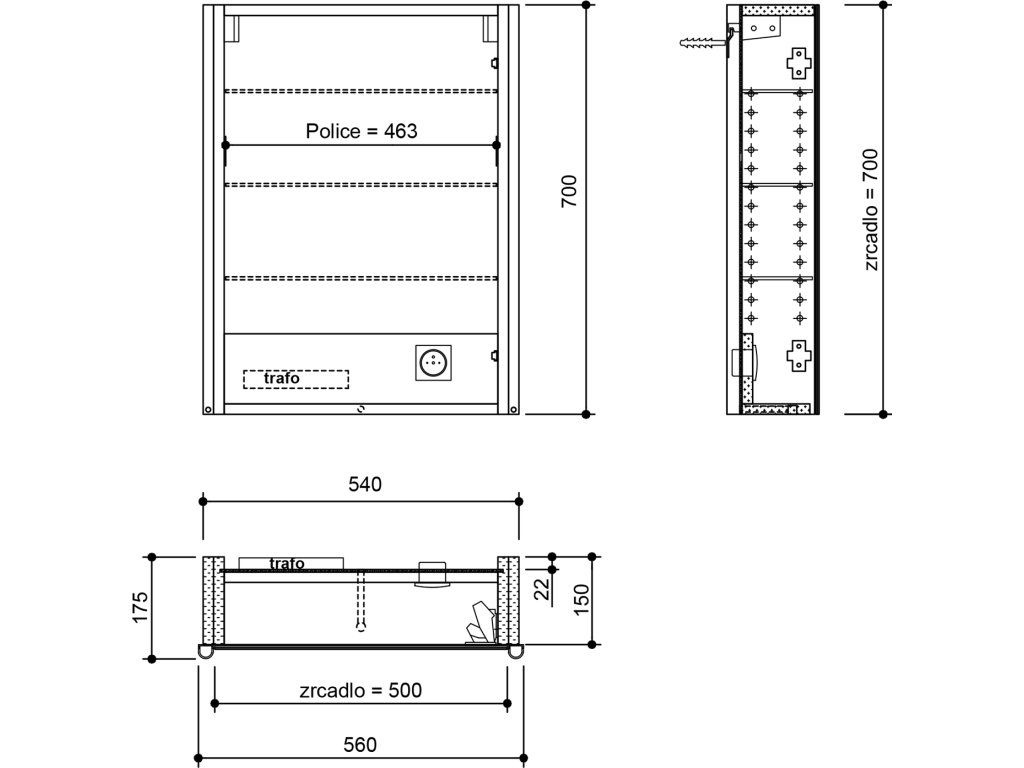 Speciální možnosti: | Zpomalovací panty, Osvětlení, Elektrická zásuvka, Oboustranná zrcadlová dvířka |