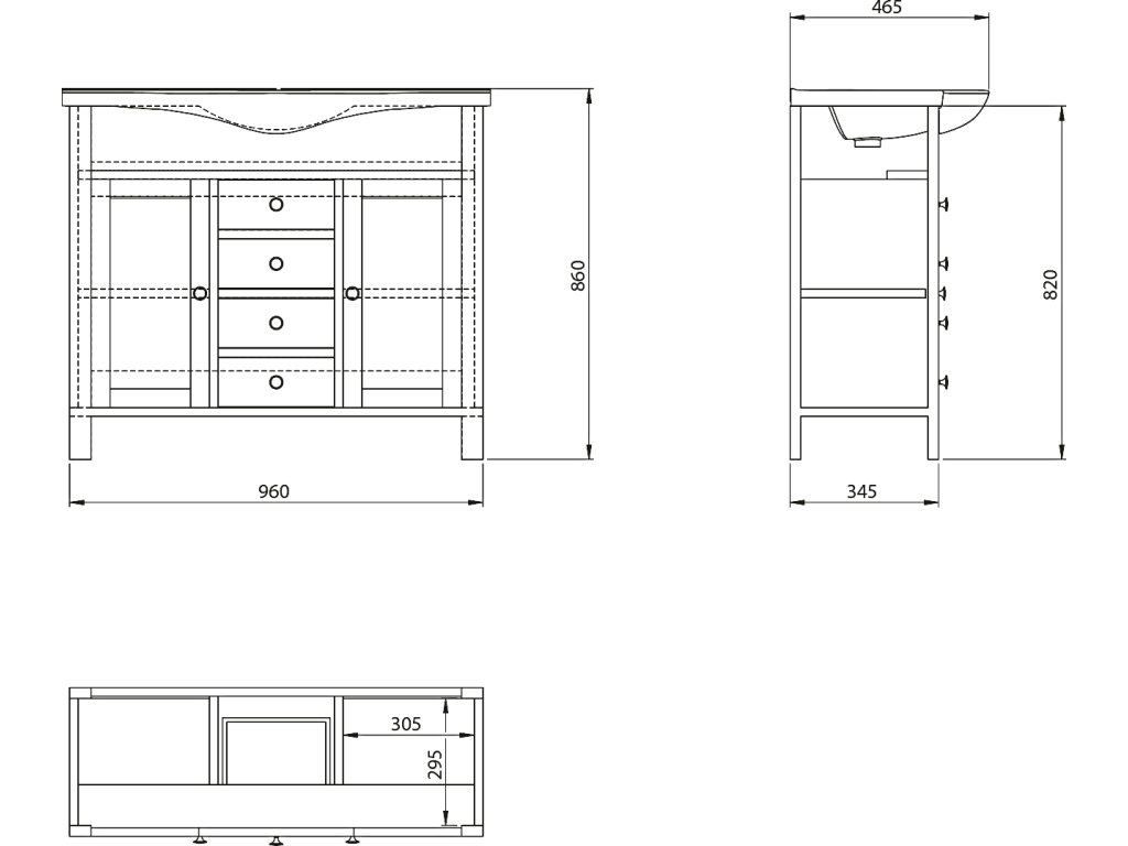 Sapho AMBRA umyvadlová skříňka 96x82x34, 5cm, mořený smrk AB1040