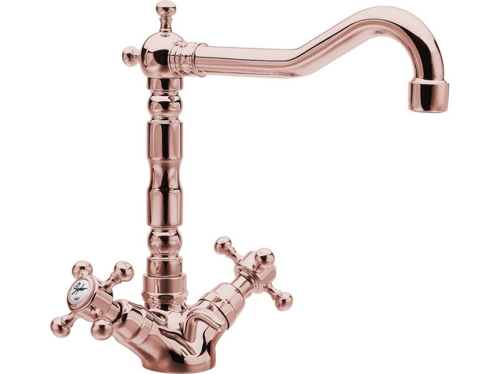 Sapho ANTEA stojánková umyvadlová baterie s retro hubicí s výpustí, růžové zlato 3377