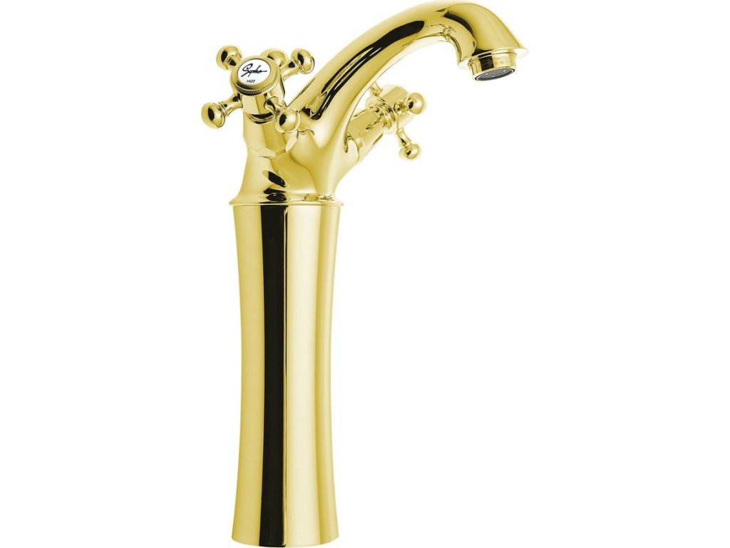 Sapho ANTEA stojánková umyvadlová baterie vysoká s výpustí, výška 245mm, zlato 3175L