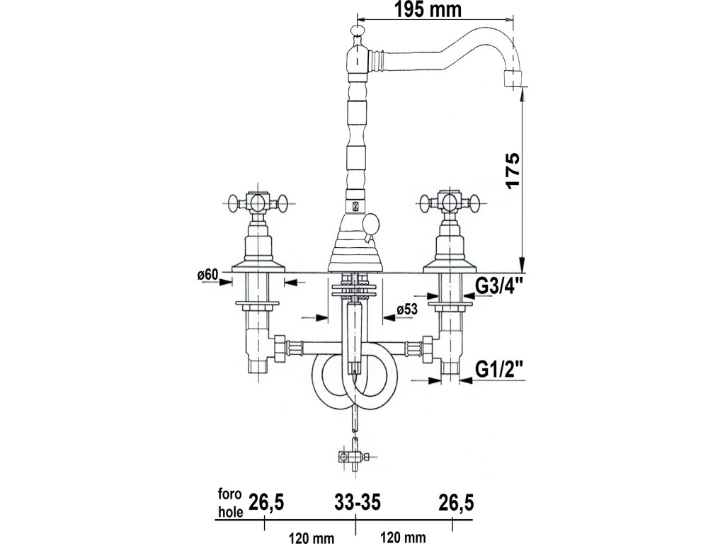Sapho ANTEA tříprvková umyvadlová baterie s retro hubicí, s výpustí, chrom 3221
