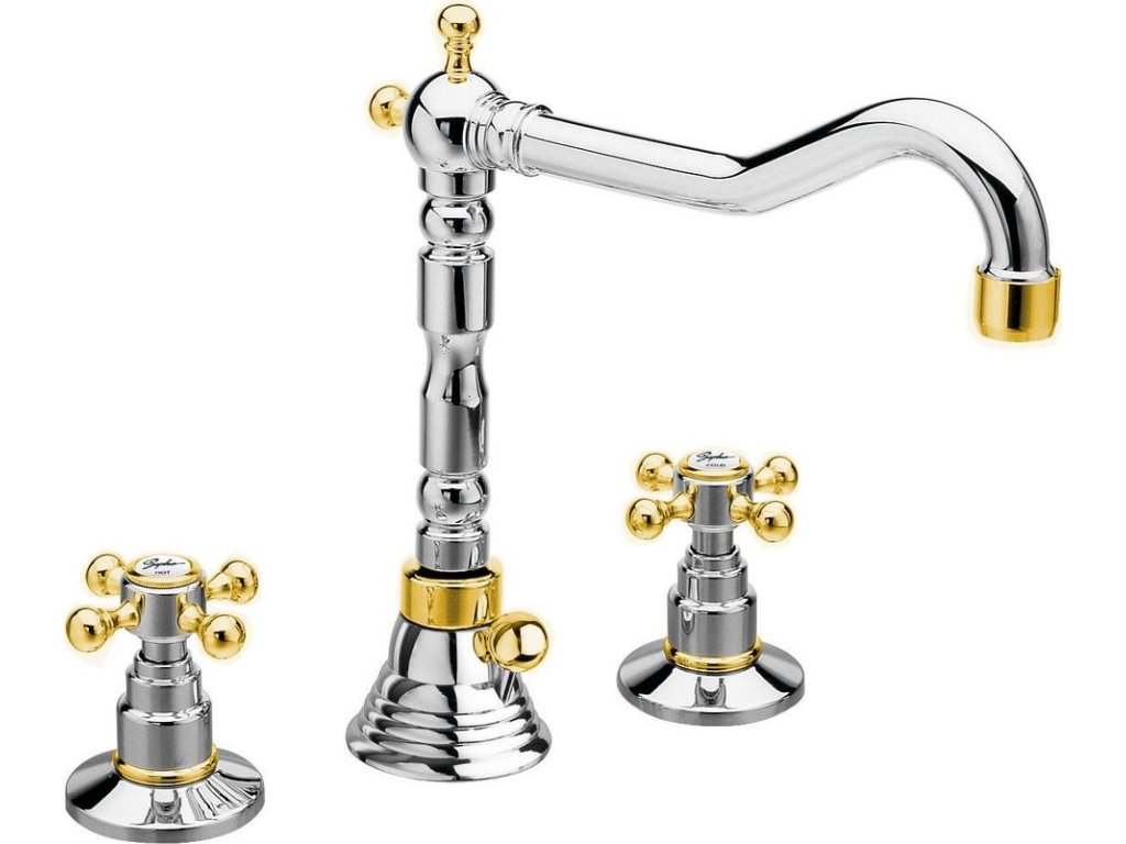 Sapho ANTEA tříprvková umyvadlová baterie s retro hubicí, s výpustí, chrom/zlato 3222