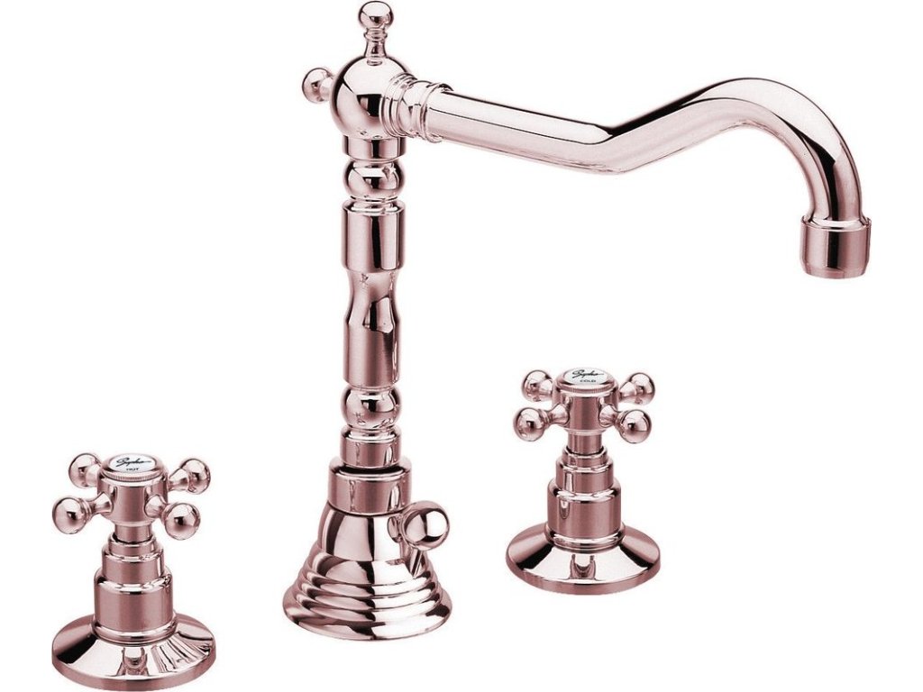 Sapho ANTEA tříprvková umyvadlová baterie s retro hubicí, s výpustí, růžové zlato 3227