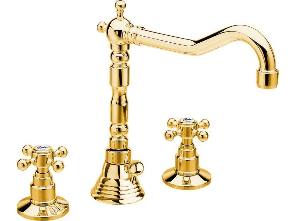 Sapho ANTEA tříprvková umyvadlová baterie s retro hubicí, s výpustí, zlato 3225ZL