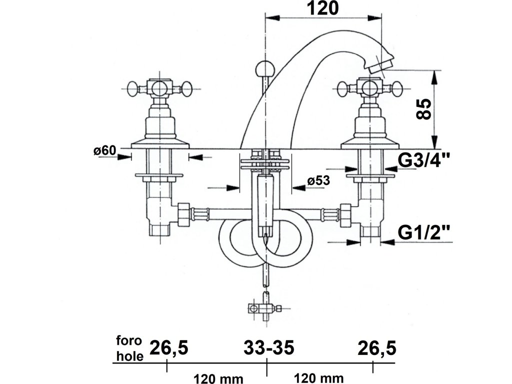 Sapho ANTEA tříprvková umyvadlová baterie s výpustí, chrom 3021