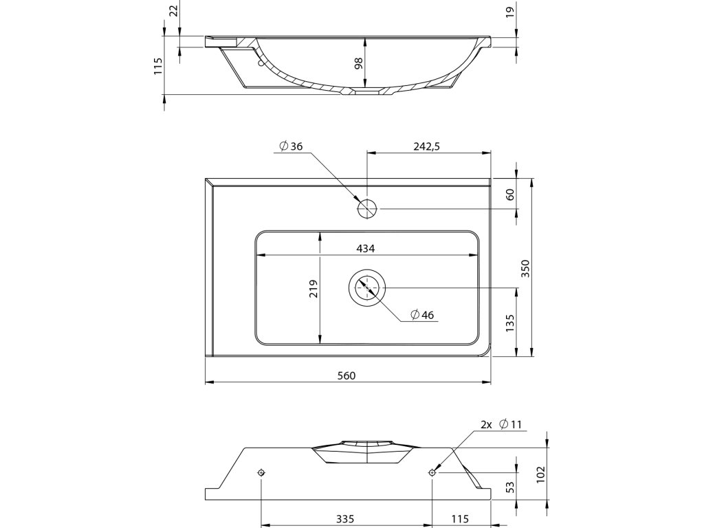 Sapho ARANA umyvadlo rohové, litý mramor, 56x35cm, levé, bílá AN055