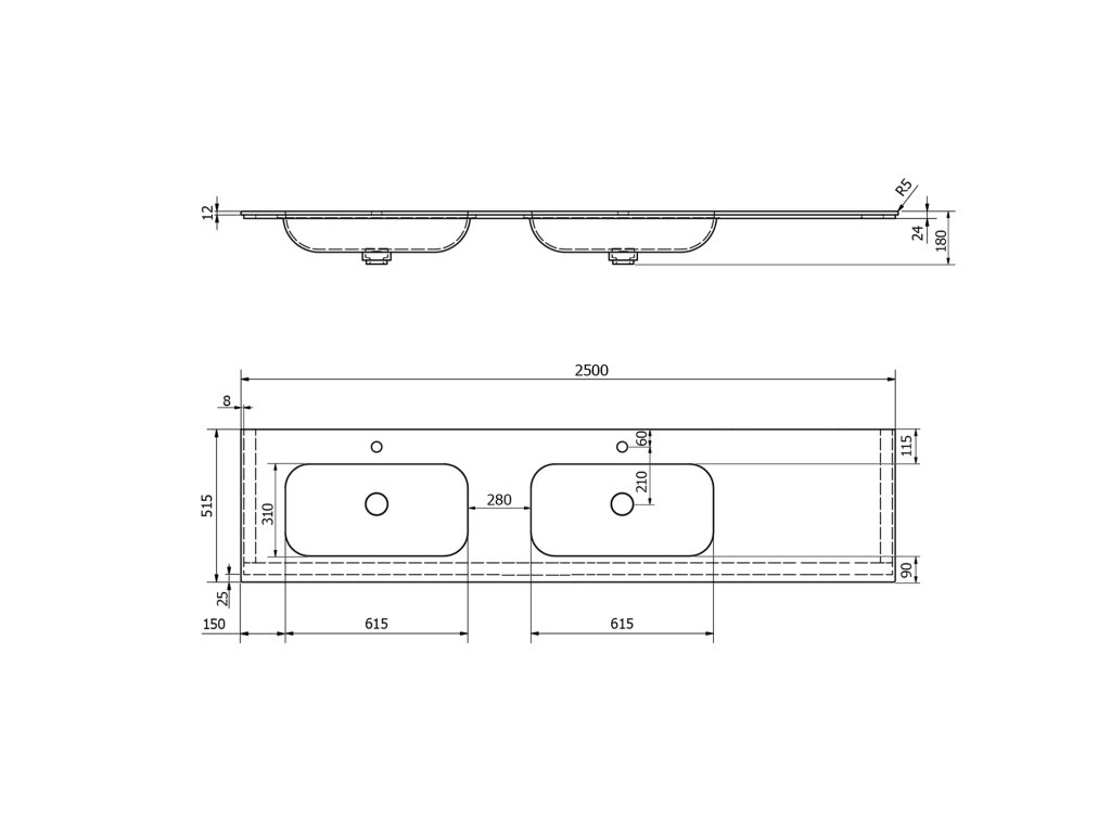 Sapho ARUBA dvojumyvadlo, Rockstone, 250x51, 5cm, levé, bílá mat AR250-B2L