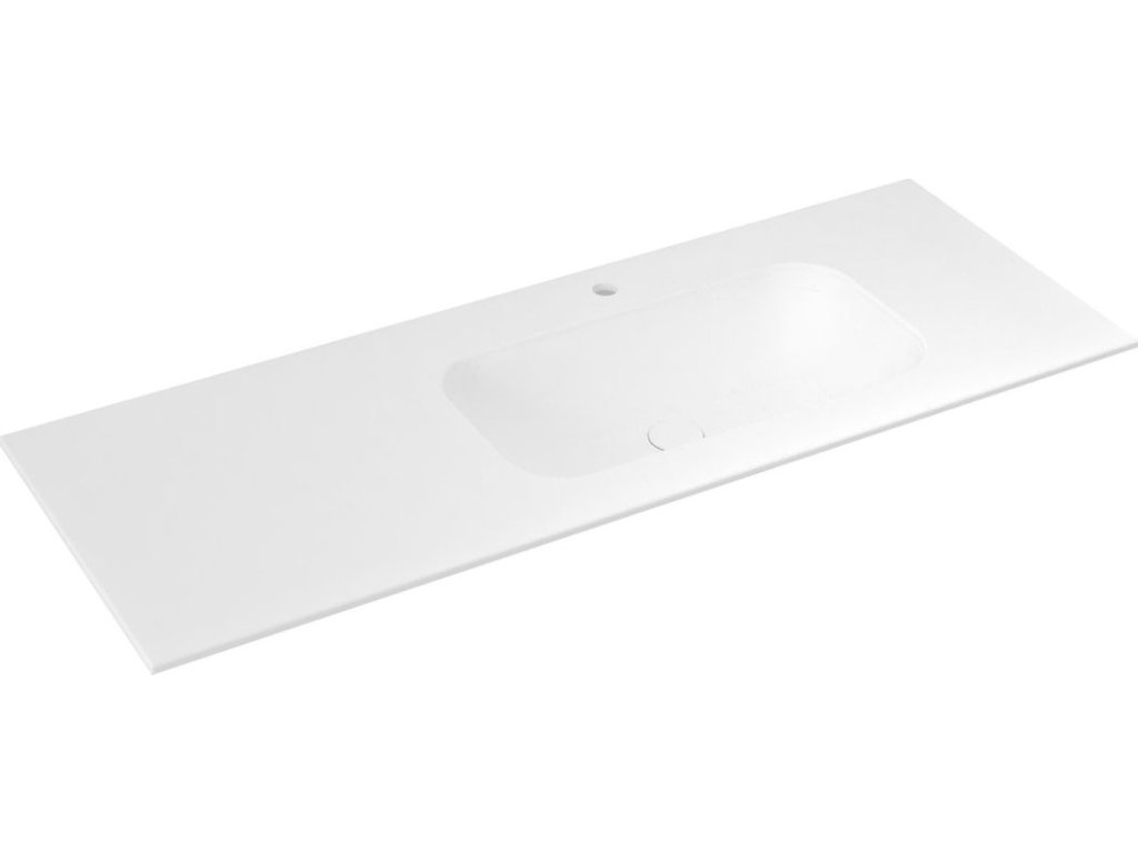 Zátka umyvadlové výpusti je vyrobena ze stejného materiálu jako umyvadlo. V otevřené poloze je zátka v jedné rovině se dnem umyvadla. Umyvadlo lze umístit na konstrukci, konzole nebo zakázkový nábytek.