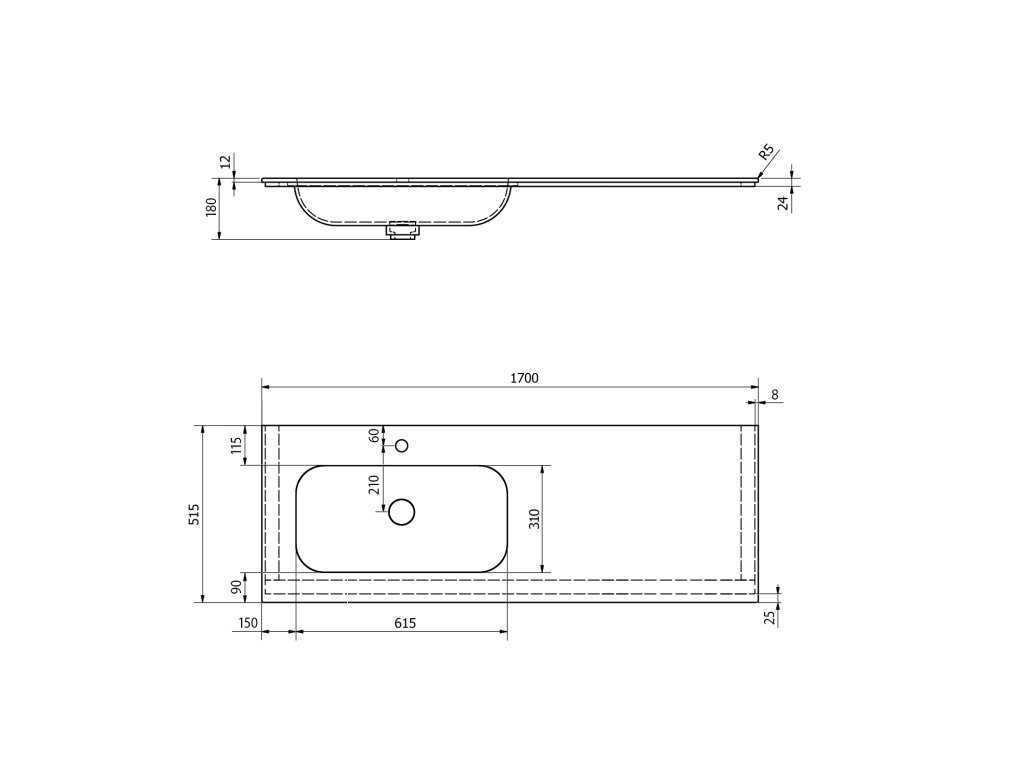 Sapho ARUBA umyvadlo, Rockstone, 170x51, 5cm, levé, bílá mat AR170-B1L