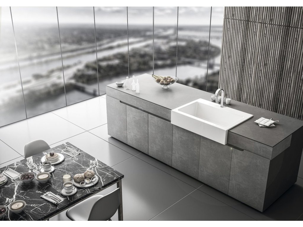 Dřez je usazen mezi dvě pracovní desky nebo do výřezu. |