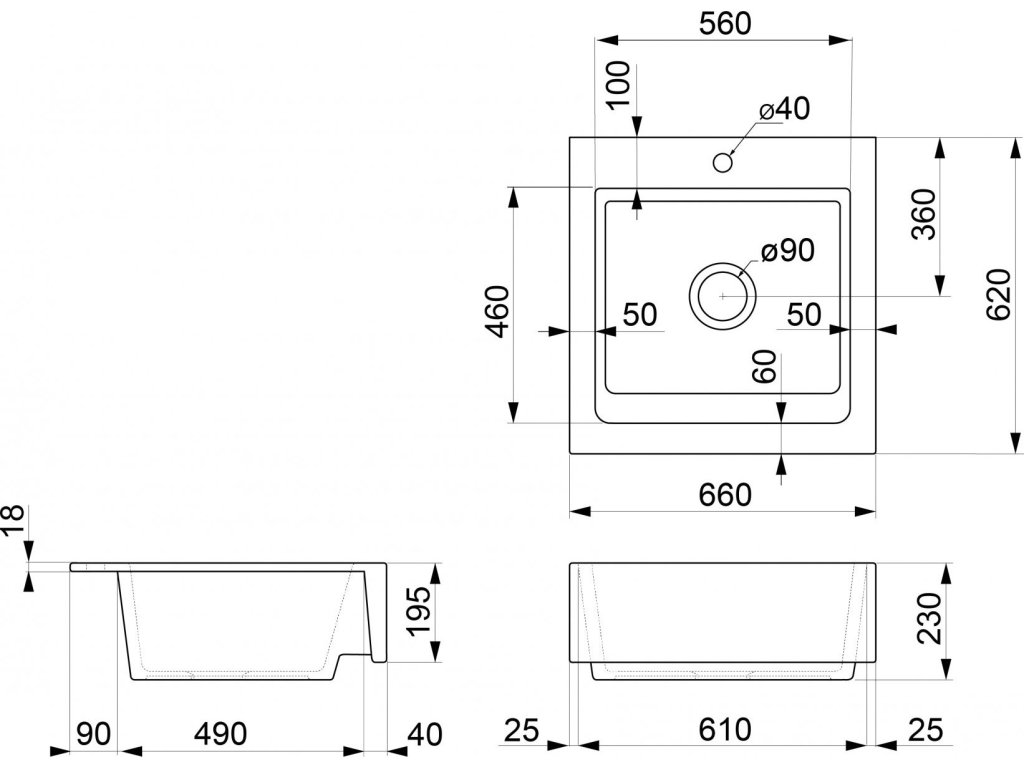 Sapho ARYA polozápustný keramický dřez s otvorem pro baterii 66x62cm, bílá 50166