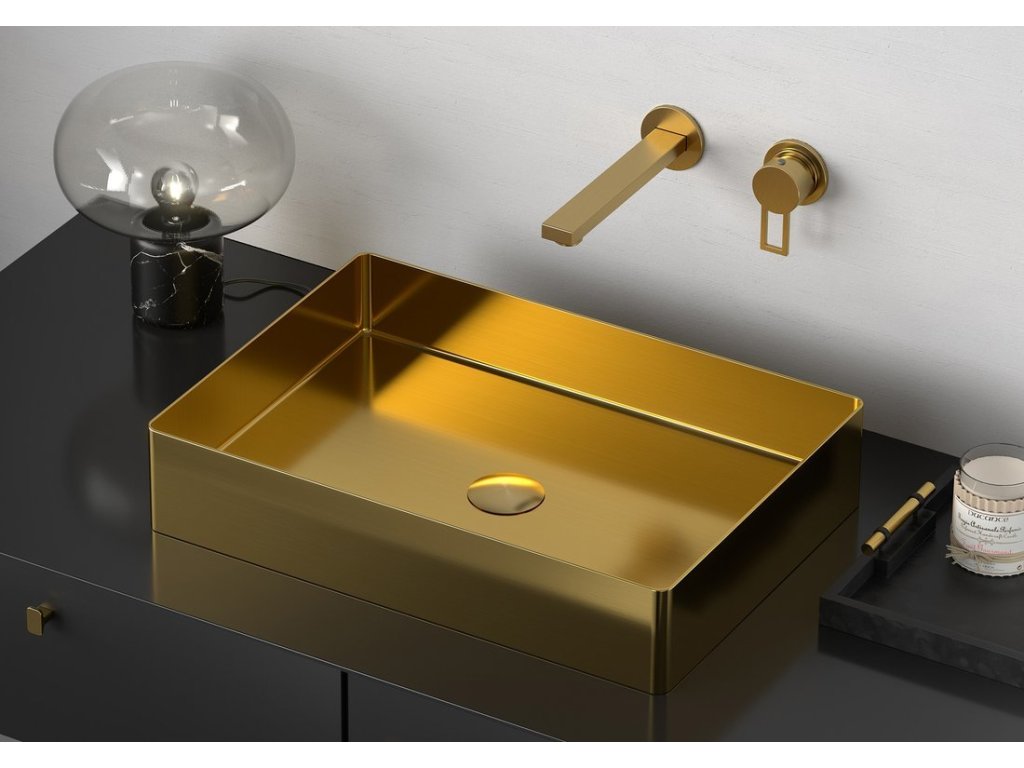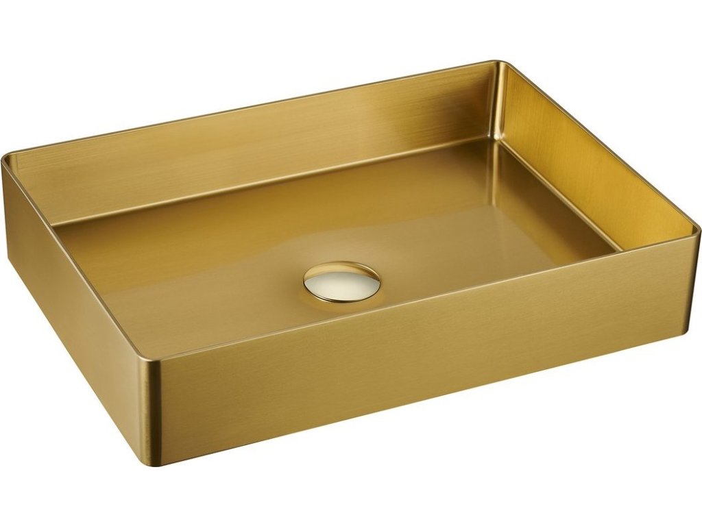 Sapho AURUM nerezové umyvadlo na desku, 50x35, 2cm, včetně výpusti, zlato mat AU203