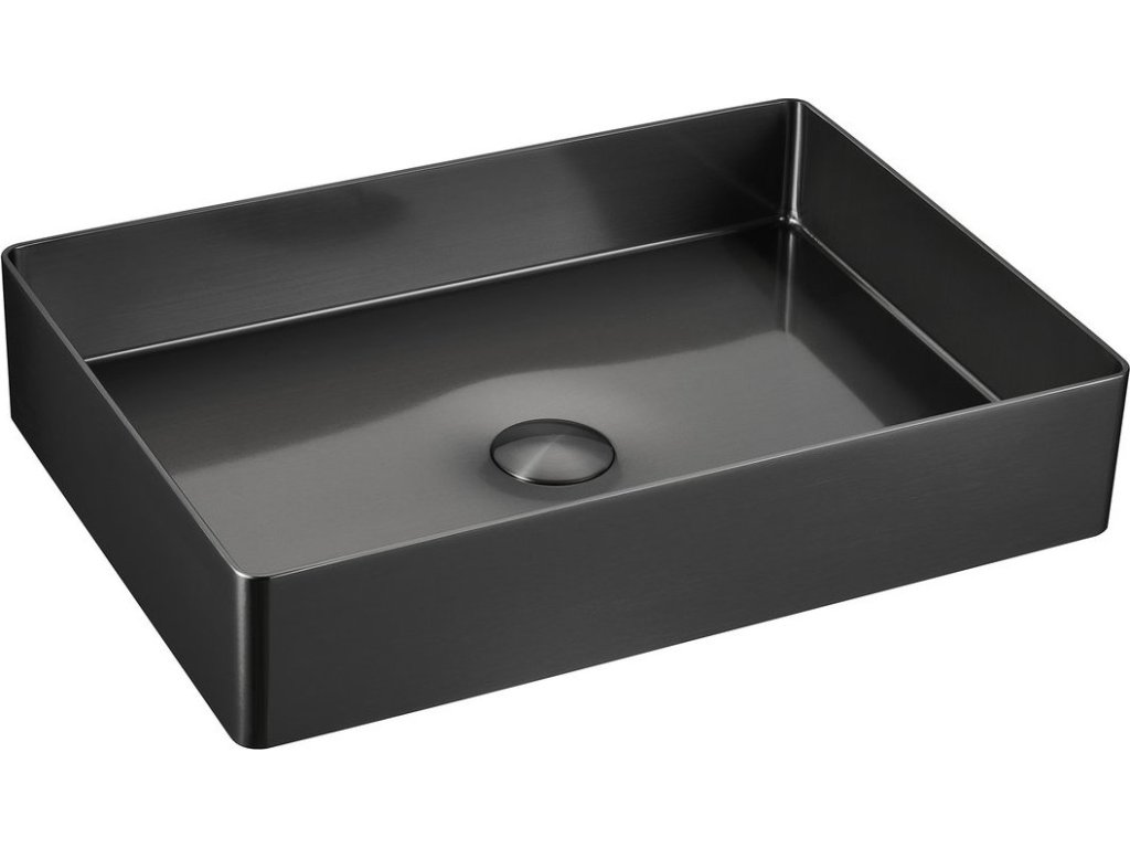 Sapho AURUM nerezové umyvadlo na desku, 50x35cm, včetně výpusti, gun metal AU103