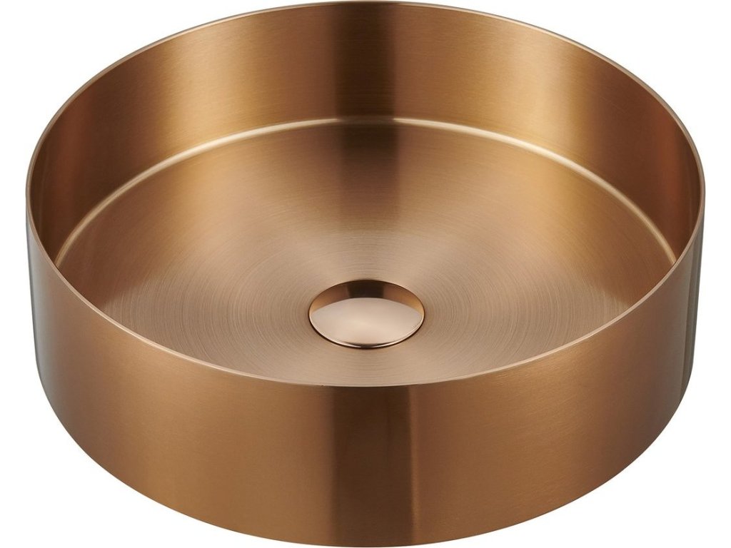 Sapho AURUM nerezové umyvadlo na desku, průměr 38cm, včetně výpusti, měď mat AU301