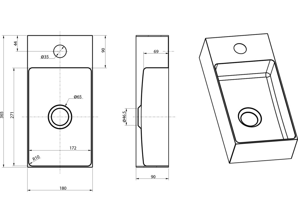 Sapho AURUM nerezové umývátko 36, 5x18cm, včetně výpusti, levé/pravé, zlato mat AU204