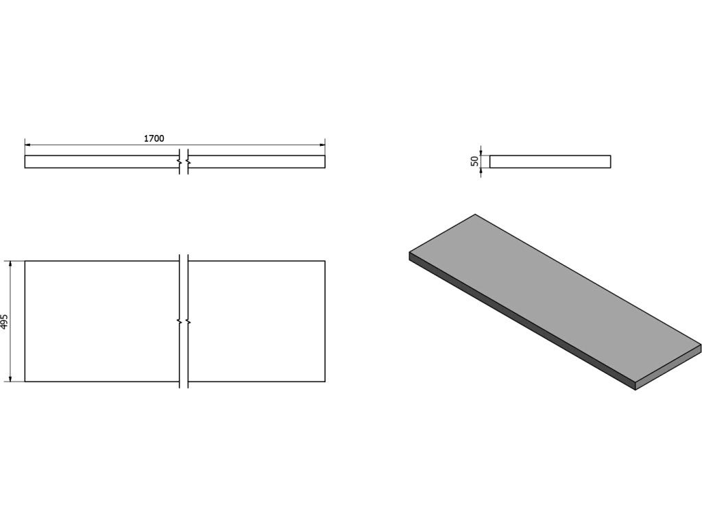 Sapho AVICE deska pod umyvadlo 170x50cm, tl.5cm, šedý kámen AV1710