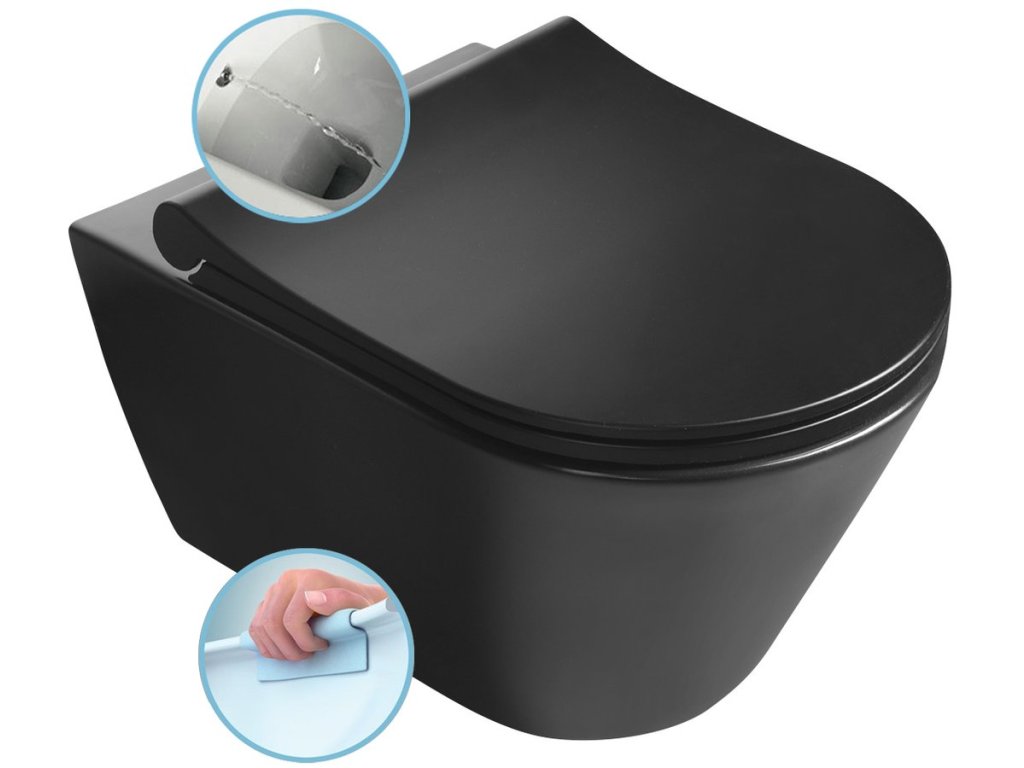 Sapho AVVA CLEANWASH závěsná WC mísa, s bidetovou sprškou, Rimless, 35, 5x53cm, černá mat 100312-110