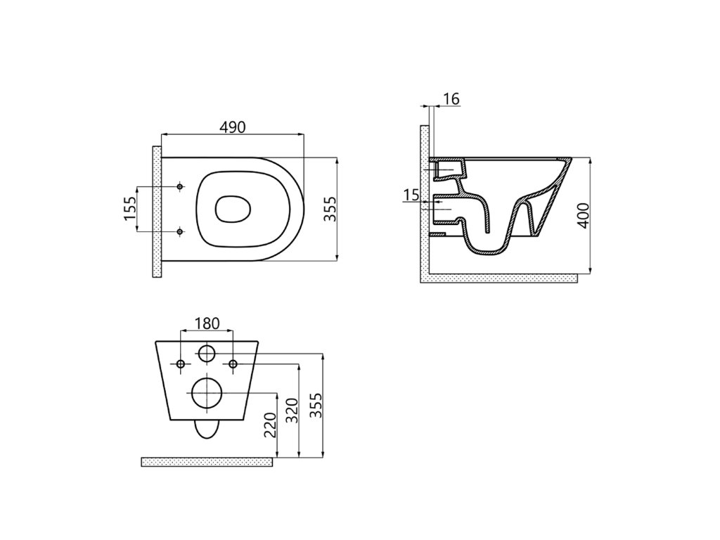 Rimless (NoRim) – toalety bez tradičního oplachového kruhu. Hladký povrch bez dutin a záhybů. Oplachová voda vytéká rozdělovačem vody pouze ze zadní části WC mísy a díky speciálnímu tvaru keramiky dokonale opláchne vnitřní prostor. Výhodou je snadná údržba a čištění WC mísy.