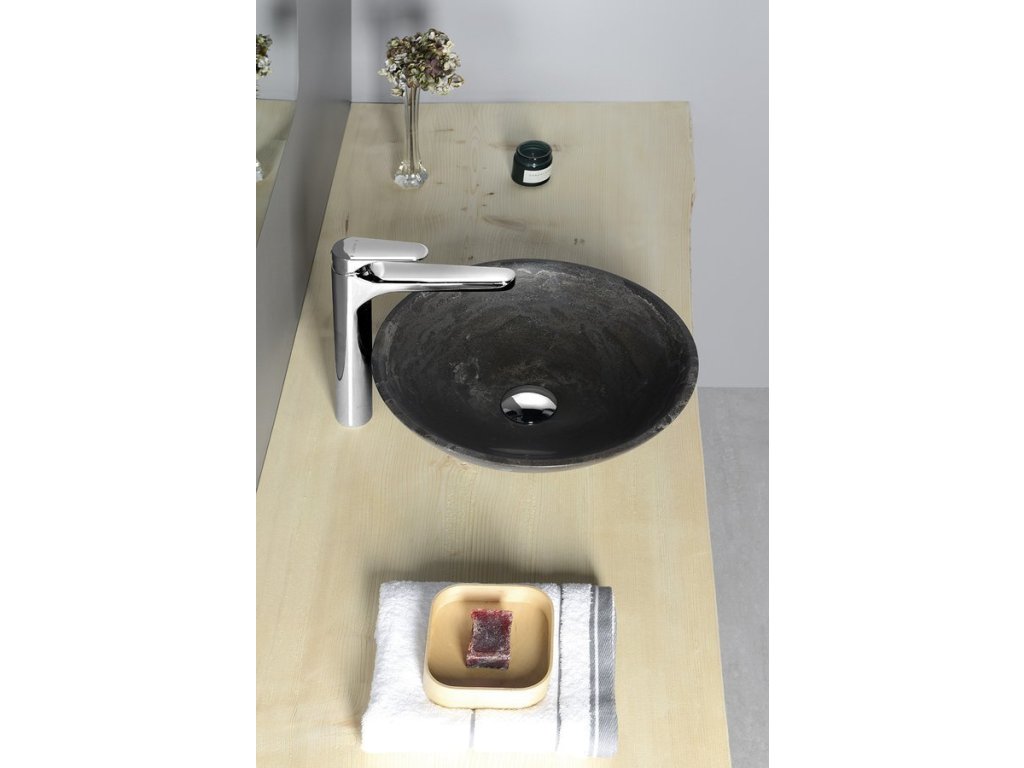 Sapho BLOK 1 kamenné umyvadlo na desku Ø 40 cm, matný tmavý kámen 2401-02