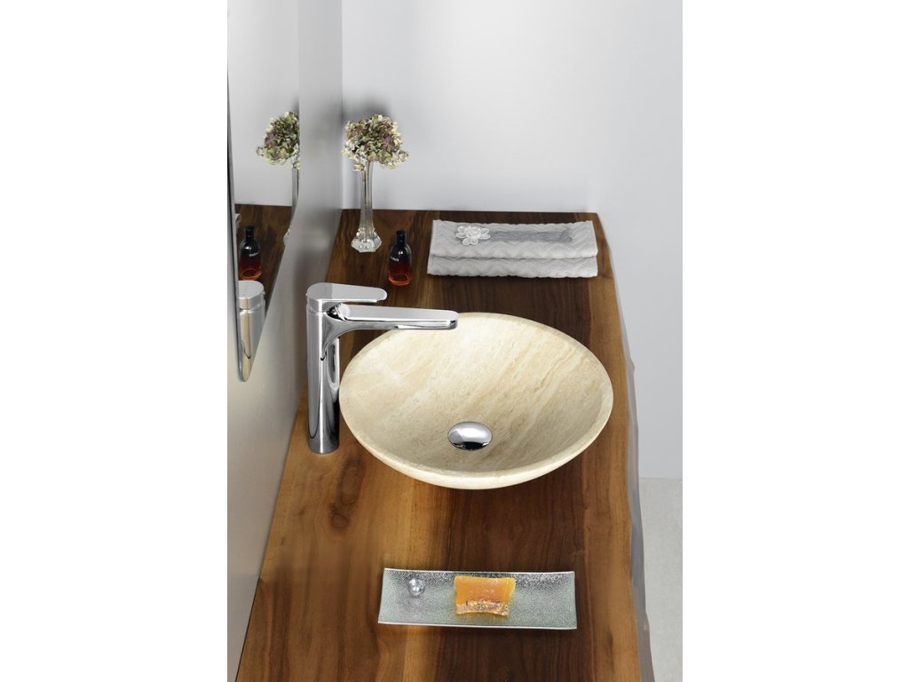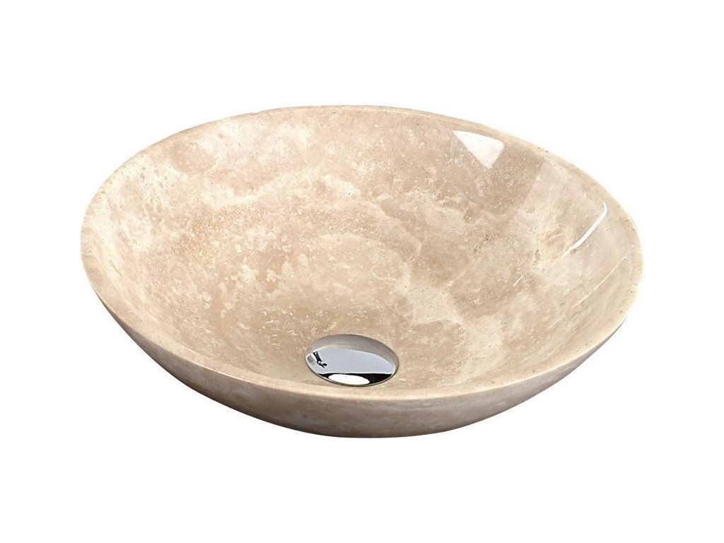 Sapho BLOK 1 kamenné umyvadlo na desku Ø 40cm, leštěný béžový travertin 2401-01