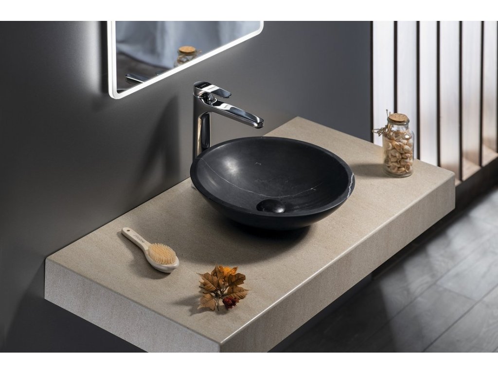 Sapho BLOK kamenné umyvadlo na desku Ø 40cm, matný černý Marquin 2401-35