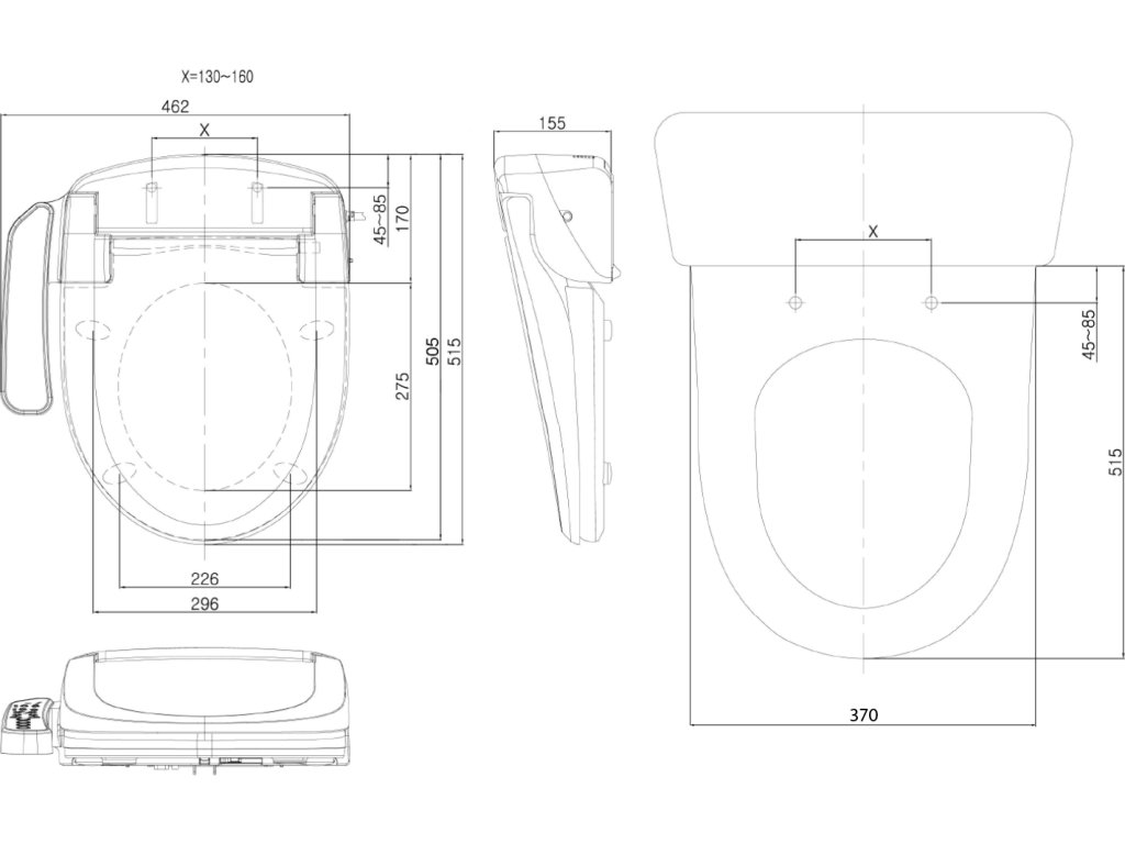 Bidet lze instalovat na Vaši stávající toaletní mísu. Abyste před pořízením bidetu měli úplnou jistotu, že bude vhodný na Vaši toaletní mísu, doporučujeme ověřit, zda rozměry této mísy odpovídají technickému výkresu - viz sekce "Ke stažení". V dosahu 1,4 m od bidetu je nutno umístit zásuvku 230V/50Hz. Způsob instalace je popsán v návodu k použití. Vlastní instalace je velice jednoduchá, balení obsahuje vše, co je potřeba. Přiloženou T-rozbočkou a pancéřovou hadicí se bidet připojí na přívod vody G3/8 a zapojí se do zásuvky. Do montážních otvorů v keramice, sloužících k instalaci toaletního prkénka, se pomocí přiložených šroubů instalují posuvné kolejničky, do nichž se bidet nasune.
