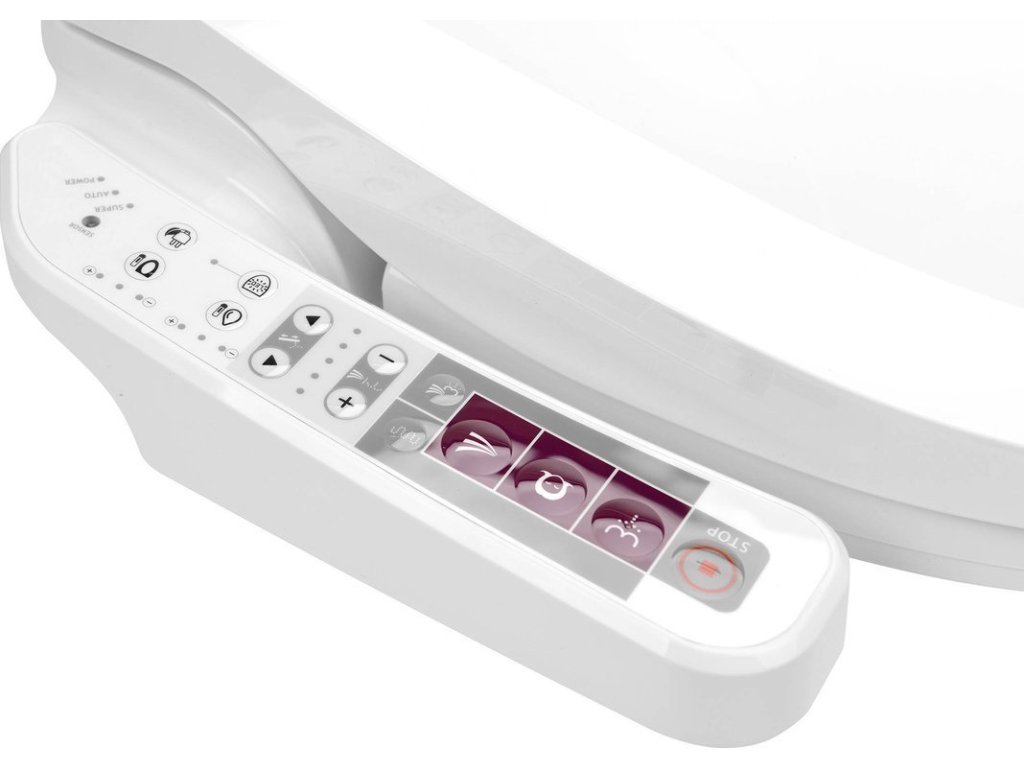 Funkce bidetu: | Bidetová a dámská tryska, Nastavitelná poloha trysek, Nastavitelná teplota vody, Nastavitelný tlak vody, Oscilační pohyb trysky, Masážní oplach, Teplovzdušné sušení, Vyhřívané sedátko, Dotykový senzor v sedátku, LED noční osvětlení, Automatické čištění trysek, Úsporný režim ve stand by |
