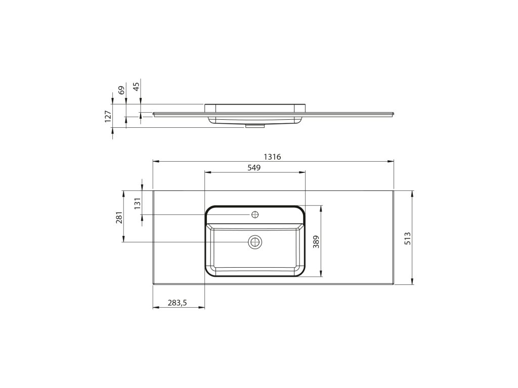 Sapho BRAHEA umyvadlo 131, 6x51, 5cm, rockstone, levé, bílá mat BT132L