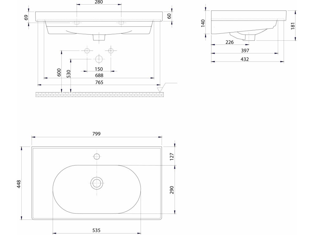 Sapho BRAND keramické umyvadlo 80x45cm, bílá TU0422