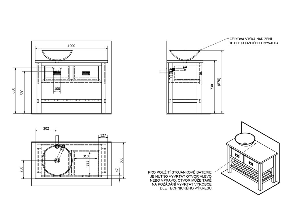Sapho BRAND umyvadlová skříňka 100x73x50cm, mořený smrk BA101S