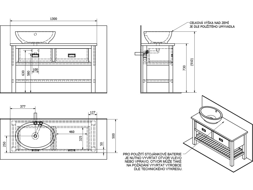Sapho BRAND umyvadlová skříňka 130x73x50cm, mořený smrk BA131S