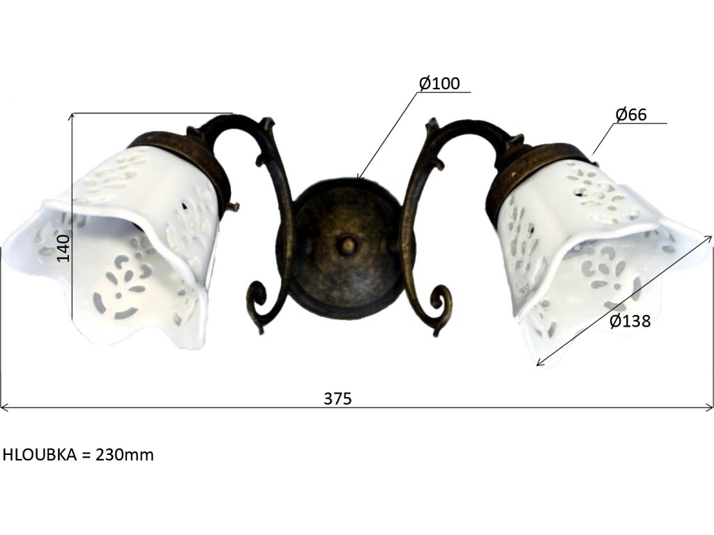 Sapho BRINDISI svítidlo 2xE14, 40W, 230V, keramické stínítko, IP21, bronz MC052