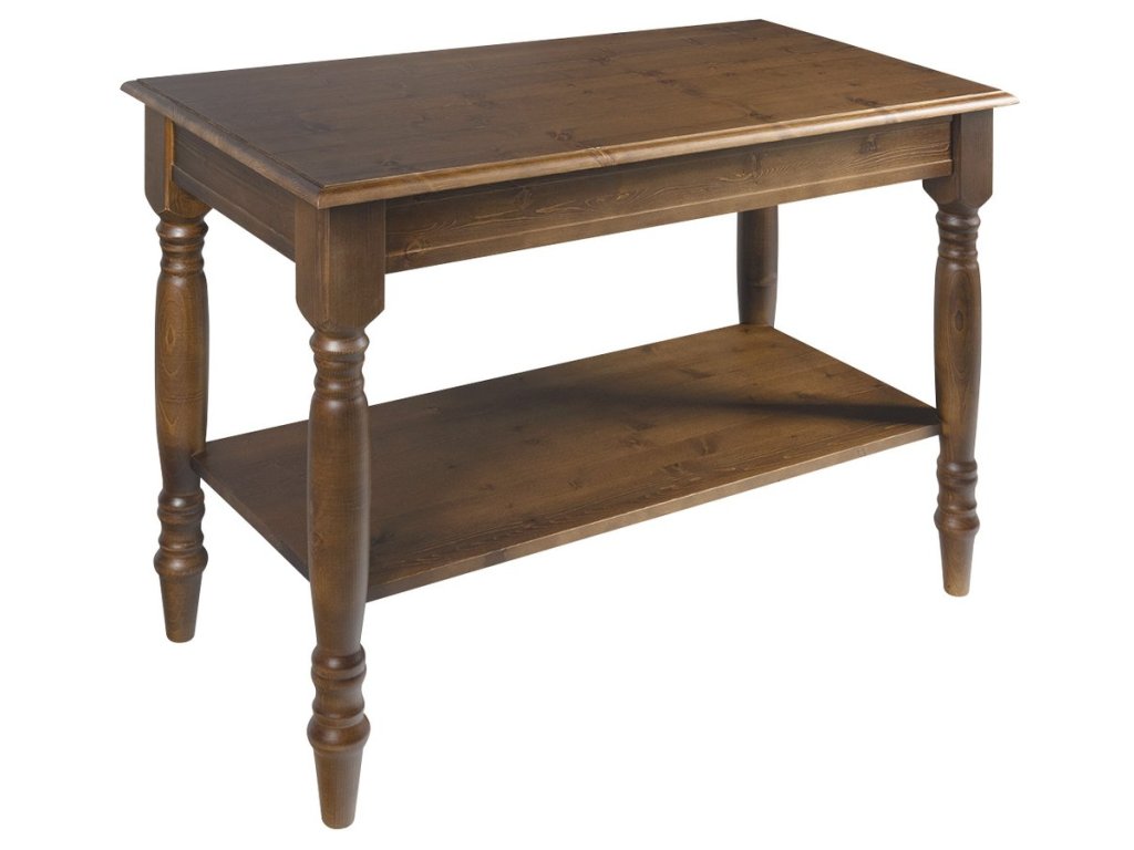 Umyvadlové stolky CIMBURA v rustikálním stylu navodí atmosféru venkovského stavení. Stolky jsou vyrobené ze smrkového masivu, mají soustružené nohy a řemeslná zručnost se odráží i v desce s oble vyřezanou hranou.