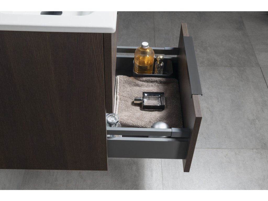 Velkou výhodou je možnost objednání praktických organizérů a misek LINDO pro uložení předmětů každodenní potřeby do horní i spodní zásuvky. Zásuvky jsou vybaveny výsuvy s pomalým dojezdem a automatickým dovřením, dvířka mají kování s tlumeným dovíráním. Úložný prostor lze rozšířit přidáním doplňkových skříněk ESPACE.