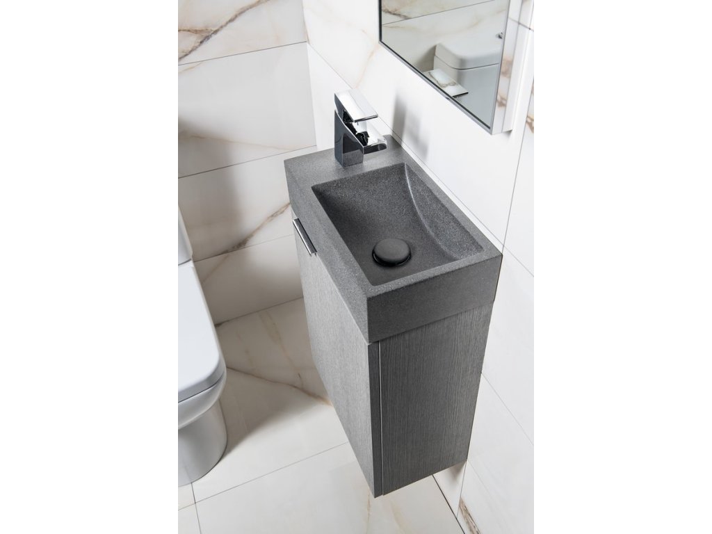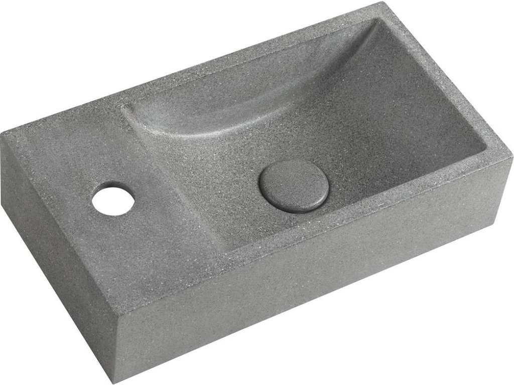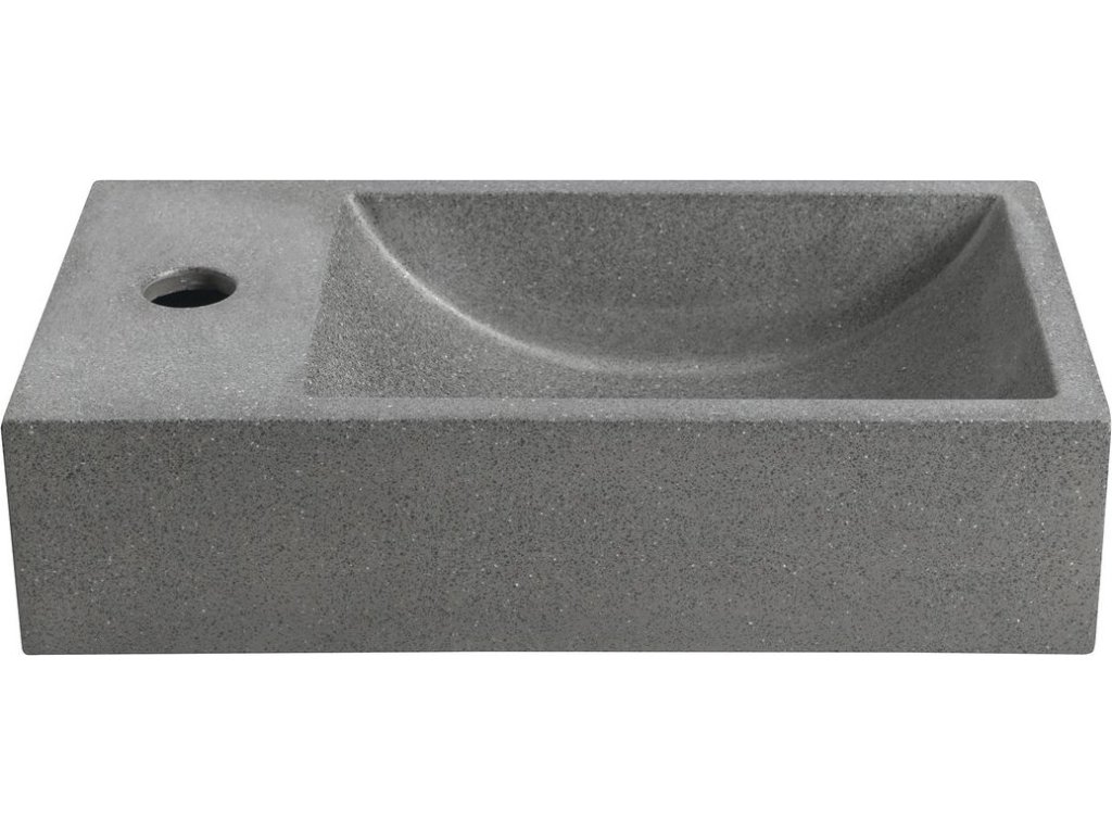 Sapho CREST L betonové umývátko, nástěnné, včetně výpusti, 40x22cm, černý granit AR403