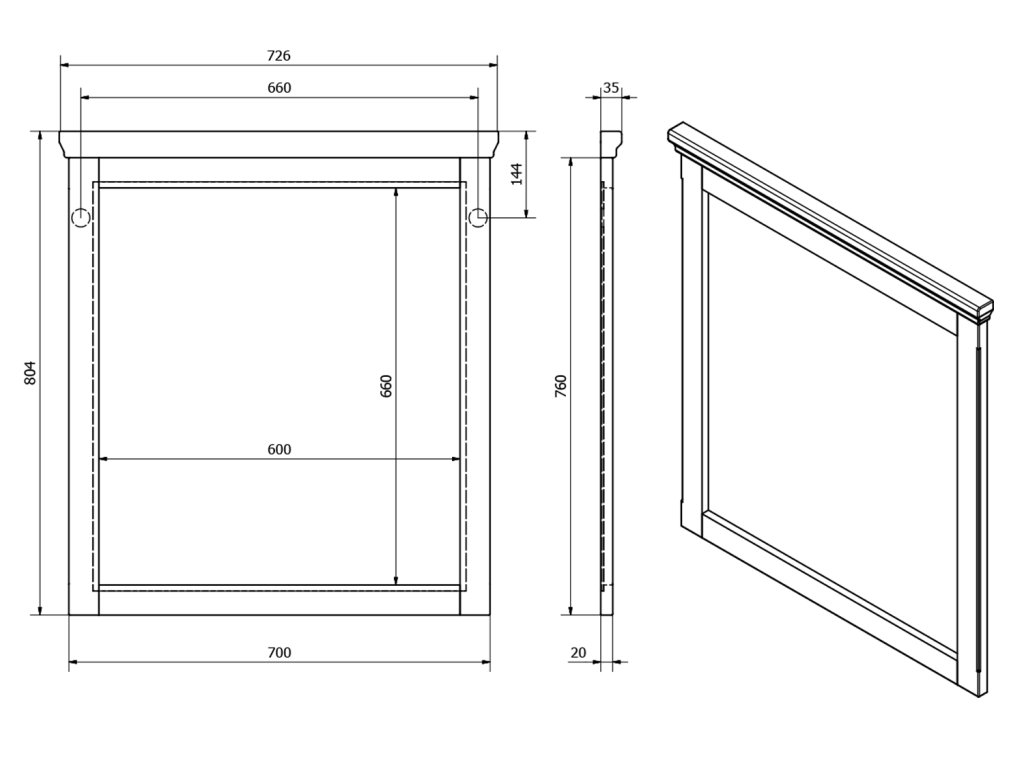 Sapho CROSS zrcadlo v dřevěném rámu 70x80cm, starobílá CR212