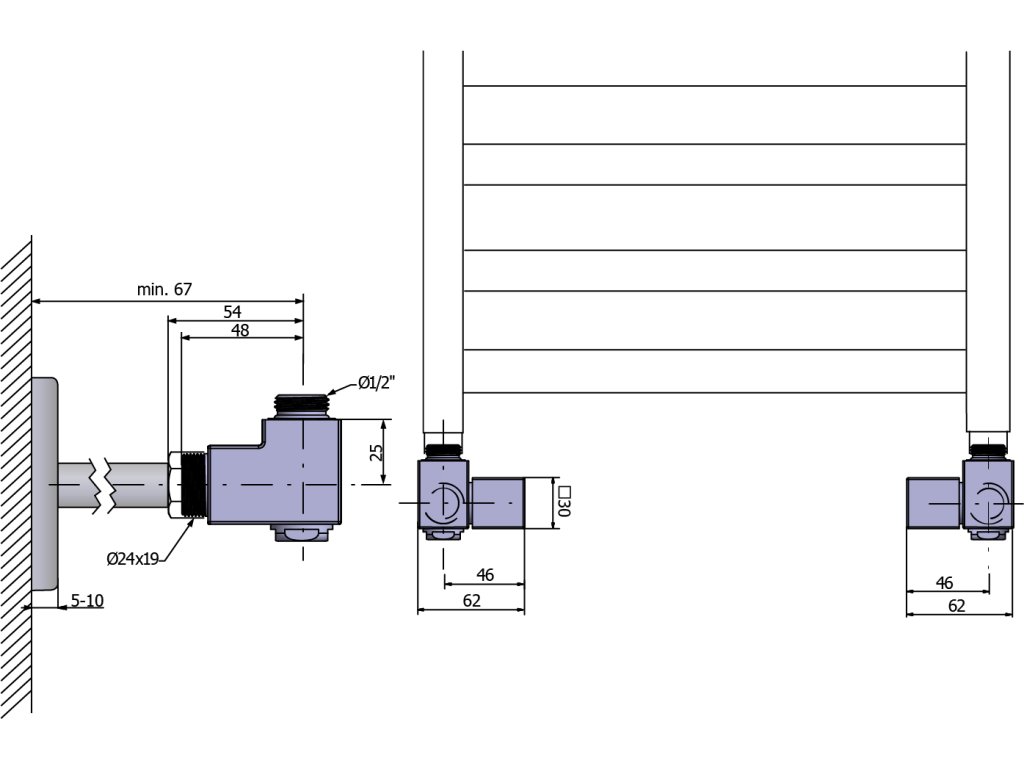Pokud se jedná o těleso se středovým připojením, záleží na tom, zda lze tyč propojit přes ventil (v tomto případě se použije kombinovaný ventil) nebo se tyč připojuje samostatně do stojny tělesa (v tomto případě se použije klasický ventil). V případě bočního připojení se vždy použije kombinovaný ventil. Na výběr je použití ručního ventilu nebo ventilu s termostatickou hlavicí.