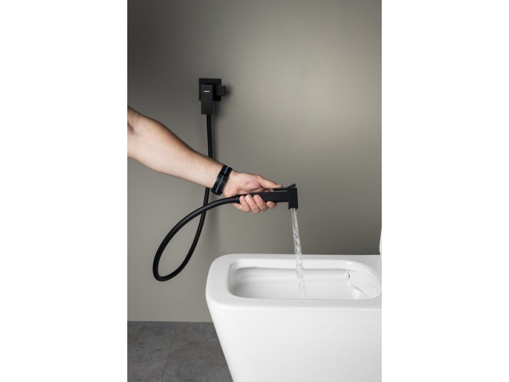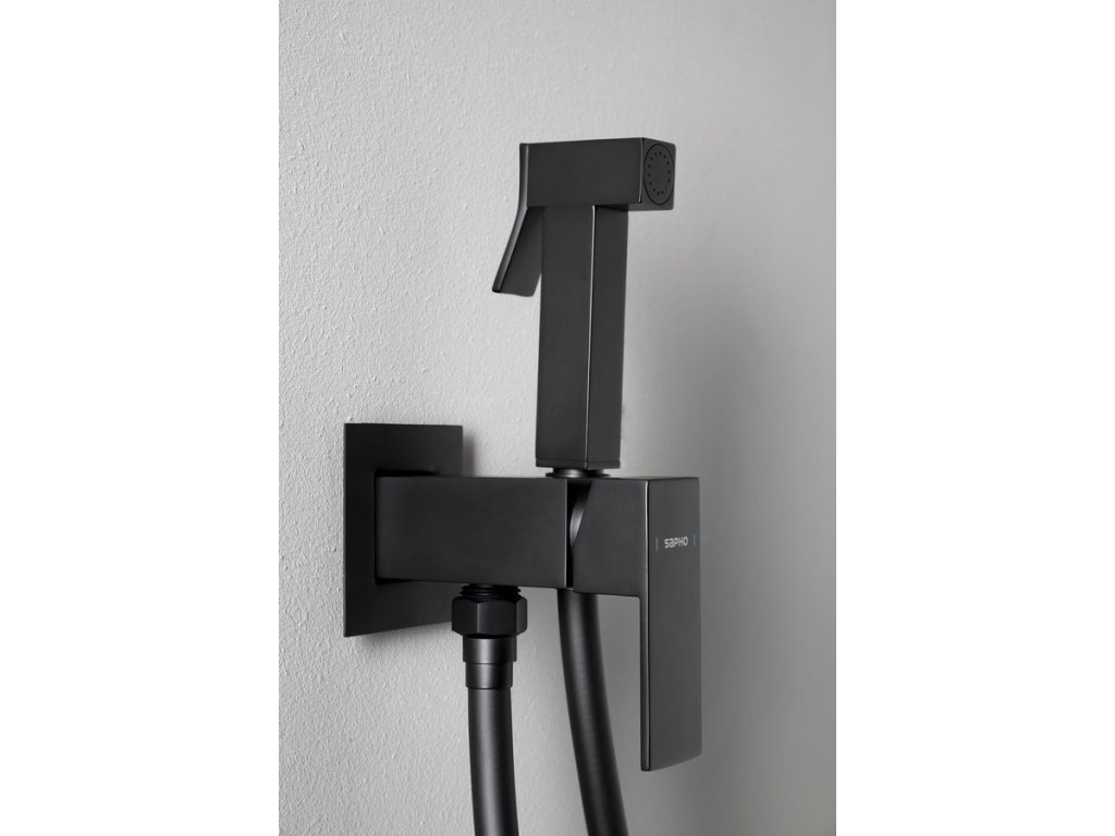 Sapho CUBEMIX podomítková bidetová baterie se Stop sprškou, hranatá, černá mat CM040B