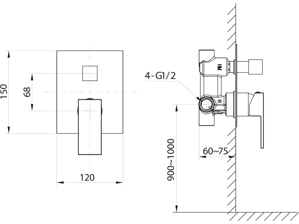 Sapho CUBEMIX podomítková sprchová baterie, 2 výstupy, chrom CM042