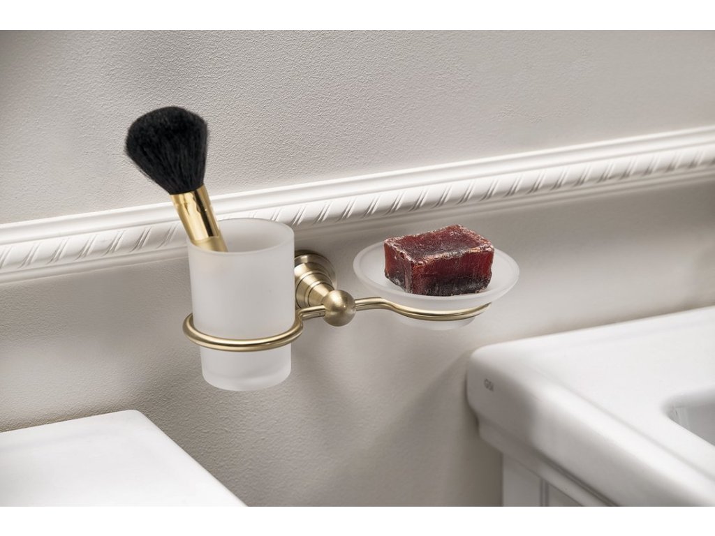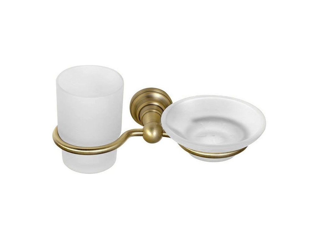 Sapho DIAMOND držák kartáčků s mýdlenkou, mléčné sklo, bronz 1318-04