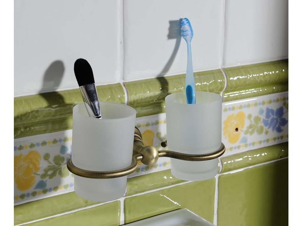 Sapho DIAMOND dvojitý držák skleniček, mléčné sklo, bronz 1318-05