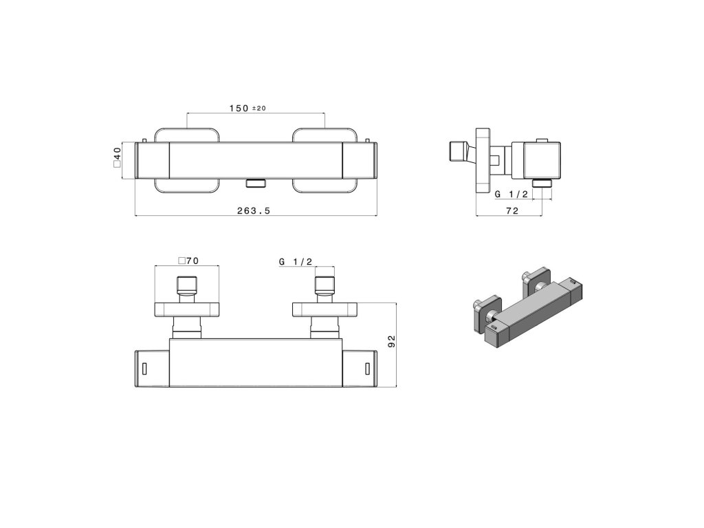 Sapho DIMY nástěnná sprchová termostatická baterie, černá mat DM245BL