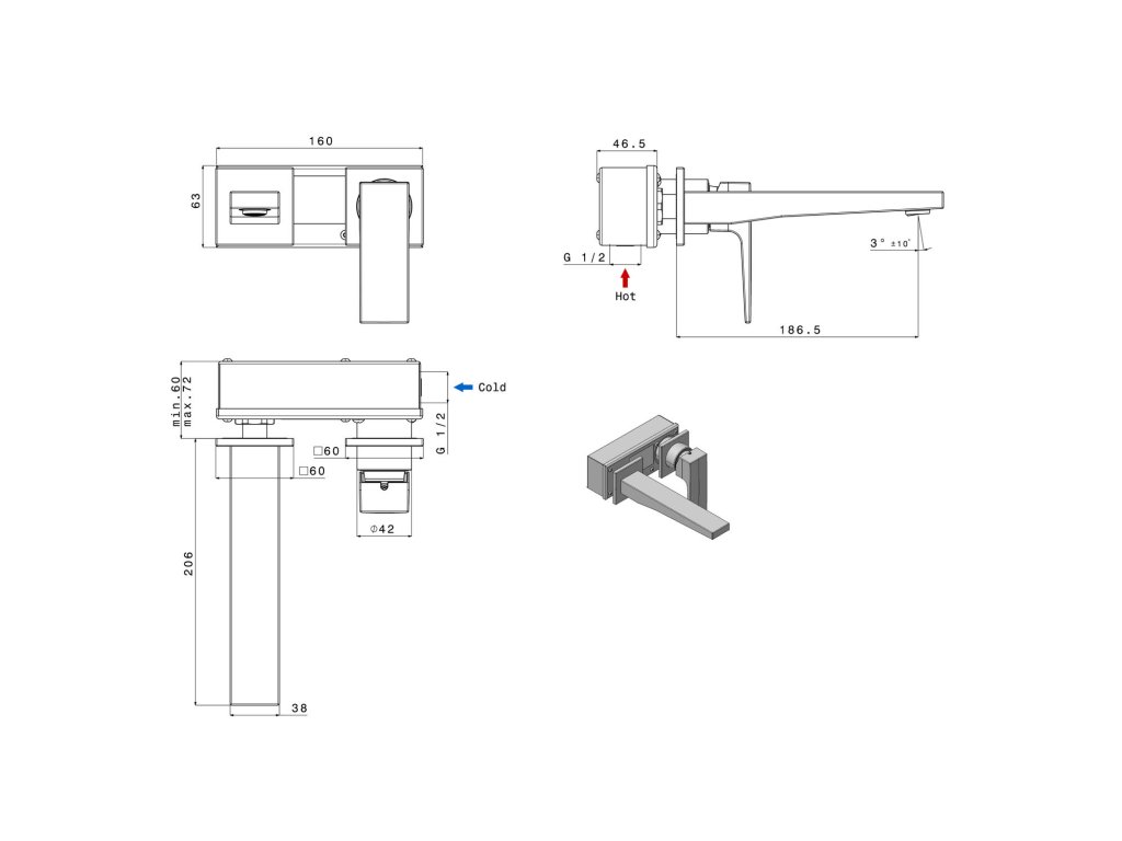 Sapho DIMY podomítková dvouprvková umyvadlová baterie, černá mat DM018BL