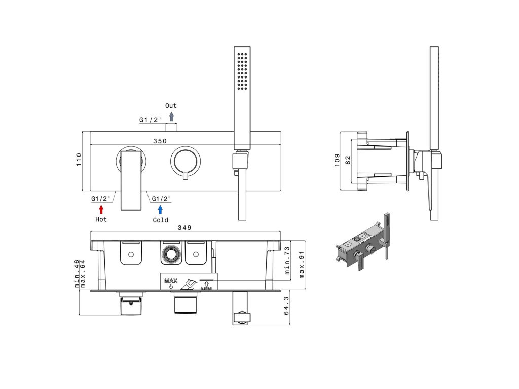 Kolekce obsahuje veškeré potřebné komponenty do koupelny. V nabídce je i sprchový sloup, který má ultra štíhlou hlavovou sprchu. Série DIMY je pro moderní koupelnu v hranatém stylu to pravé. V nabídce v chromu a matně černé.