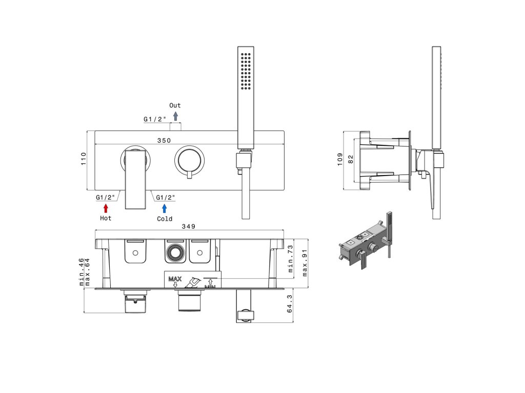 Kolekce obsahuje veškeré potřebné komponenty do koupelny. V nabídce je i sprchový sloup, který má ultra štíhlou hlavovou sprchu. Série DIMY je pro moderní koupelnu v hranatém stylu to pravé. V nabídce v chromu a matně černé.